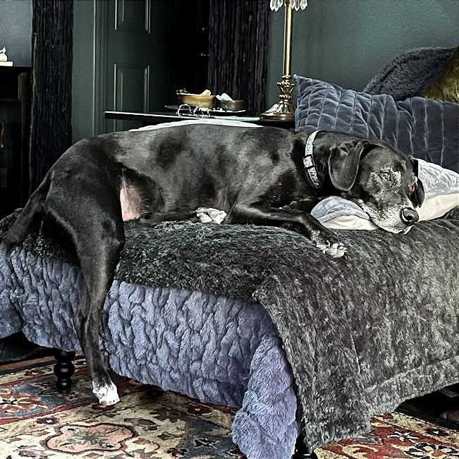 Ridley has moderate‑to‑high energy and does best with routine and appropriate outlets. A long daily walk, consistent schedule, and calm handling help him regulate and settle easily at home. When his needs are met, he’s a well‑mannered companion who enjoys downtime just as much as activity. He has excellent house manners, is dog‑door trained, nail scratch‑board trained, comfortable being home alone, and does not require a crate.