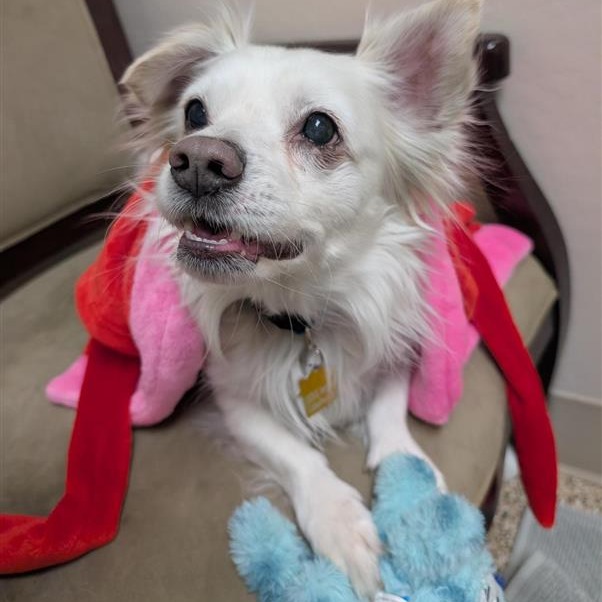 Snowball’s favorite pastime? Toys. He’ll happily hoard them into piles so impressive they’d make a dragon jealous. He’s also great at letting you know when it’s time for a quick walk to stretch his legs and take a potty break. The rest of the time, he’s perfectly content to keep you company, whether that’s playing by your side or curling up for a cozy nap.