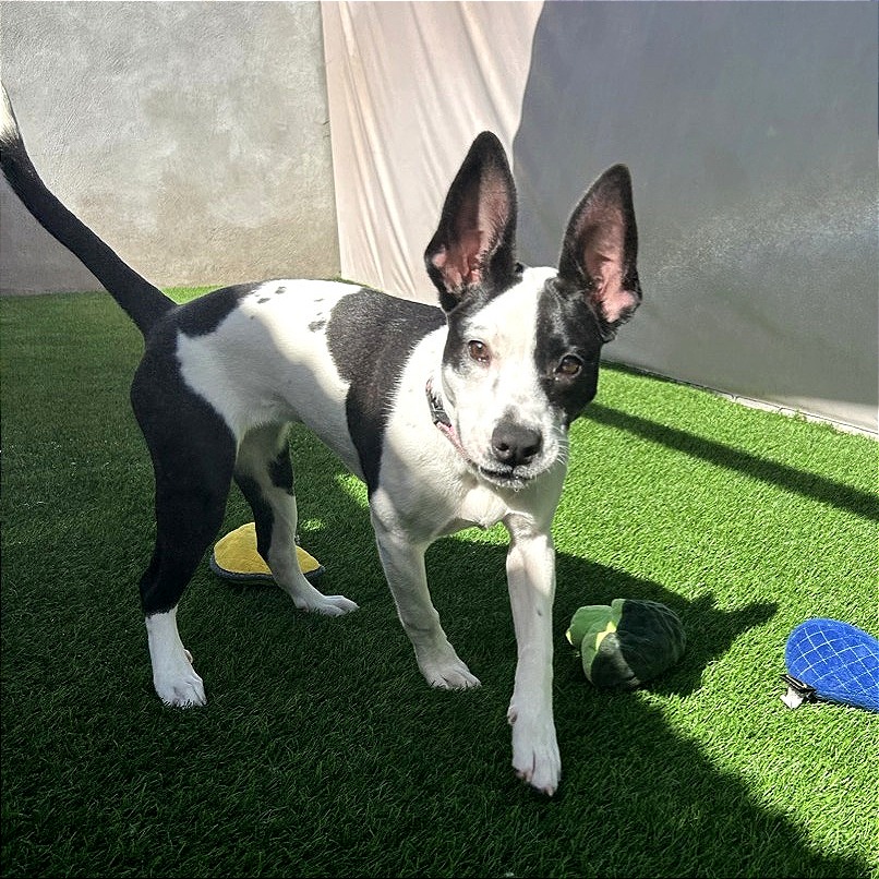 Hi! I'm Madison, a shy but playful pup with lots of love to give! I’m slow to warm up, but once I trust you, I’m all zoomies, toys, and goofy fun. I’m very high energy, treat motivated, and toy obsessed, which makes training fun, but I’ll need lots of it, along with a patient, consistent person to help me thrive.