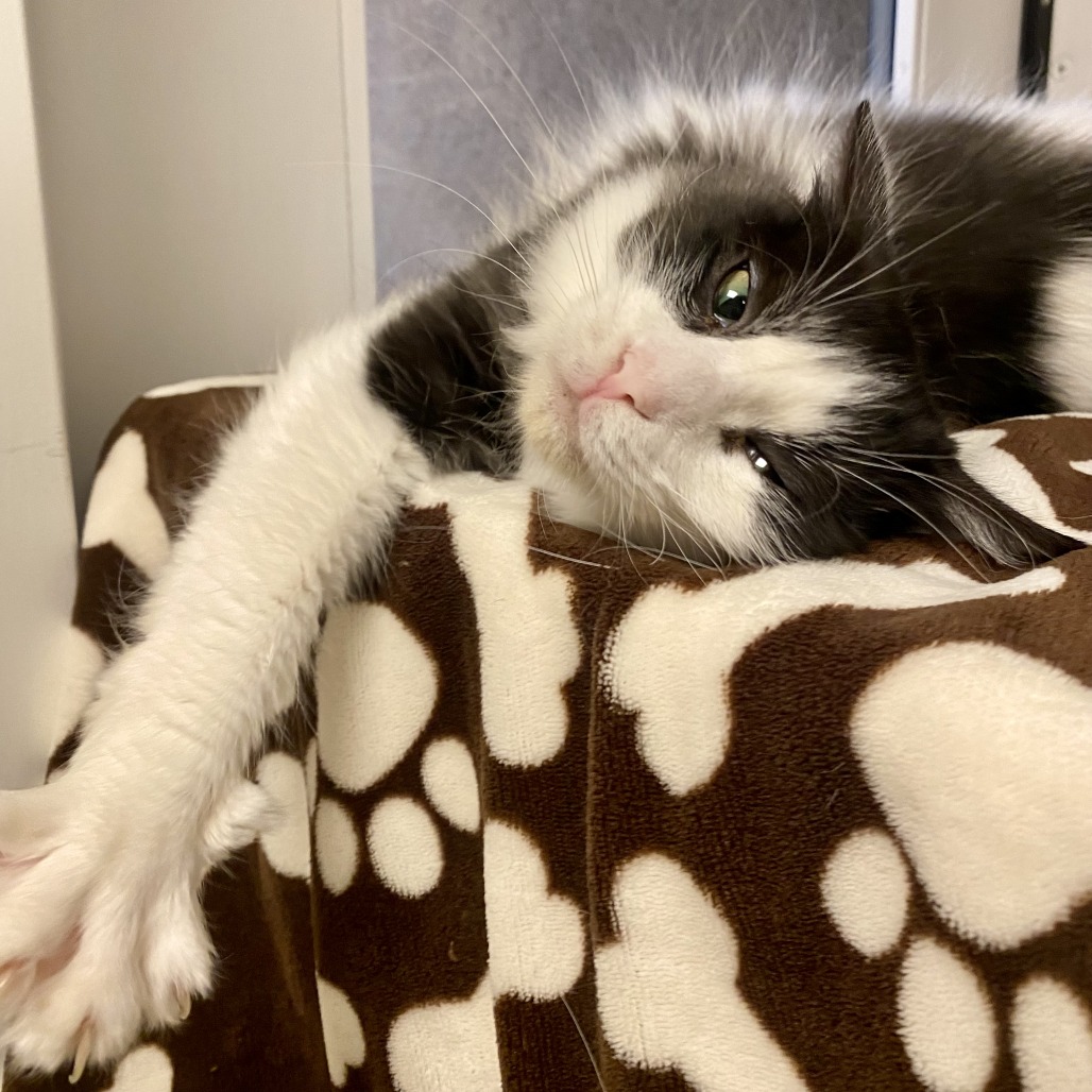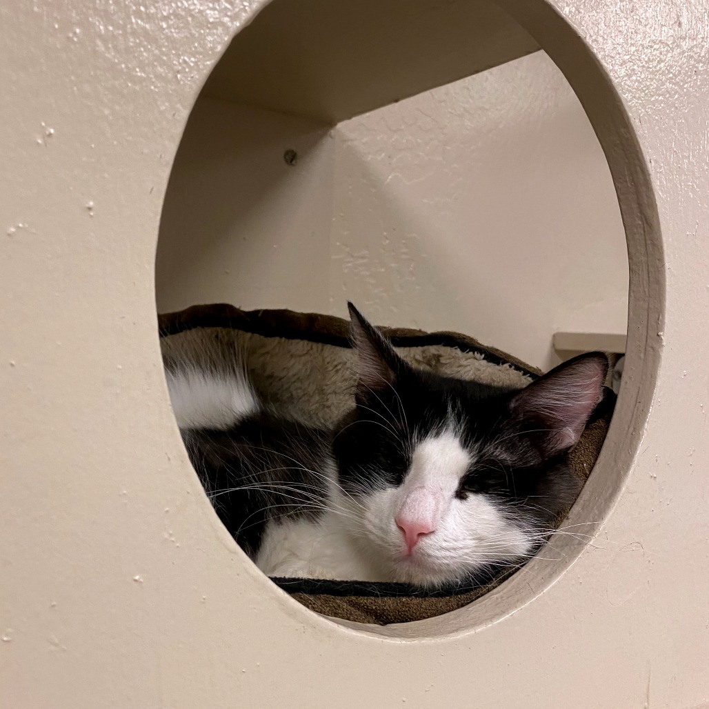 She doesn’t mind the company of other cats and would do well in a calm home where she can settle in at her own pace. If you’re looking for a kind, soft-hearted companion who will reward your patience with endless love, Mom Jeans is your girl.