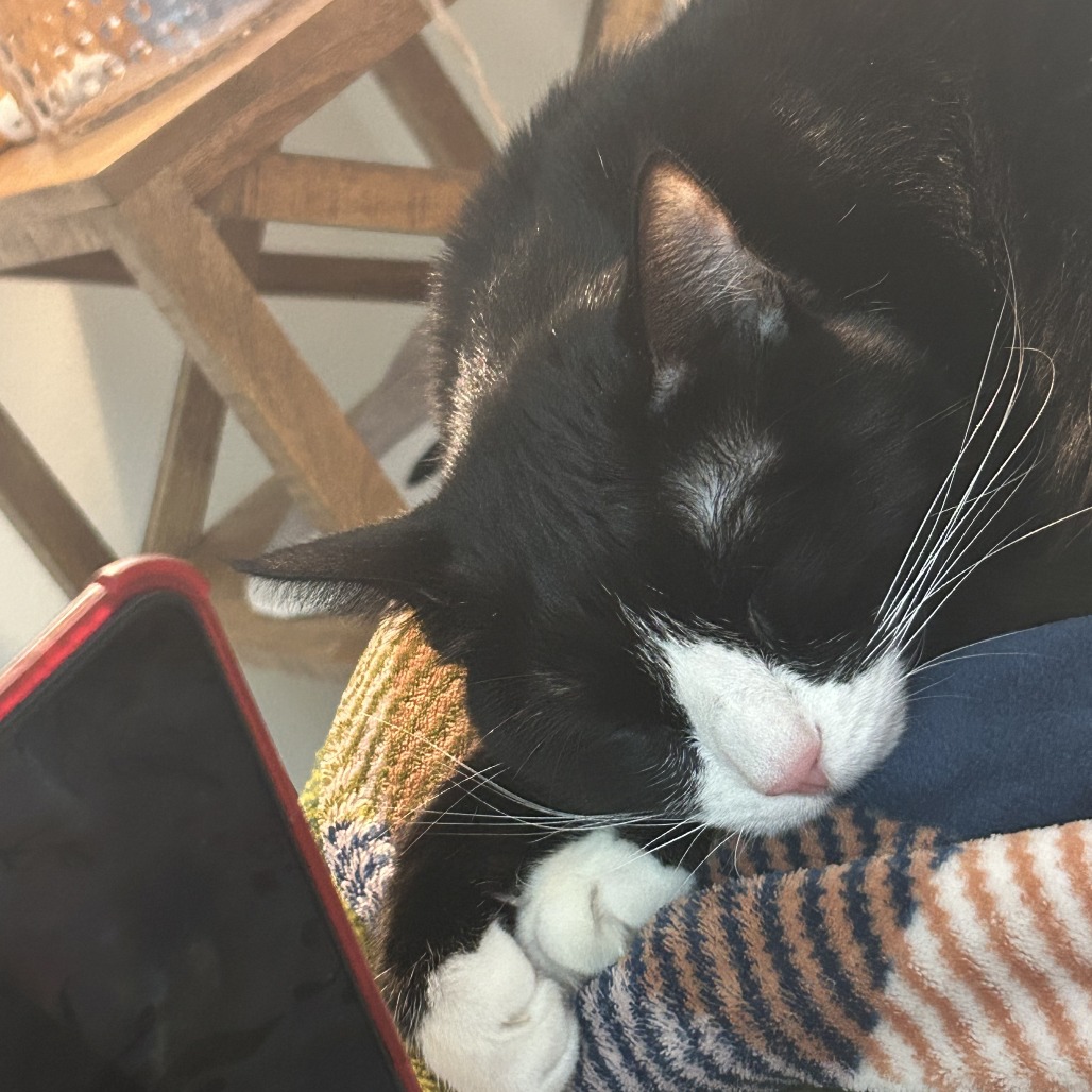 With her relaxed nature and adaptable personality, Sox would be a great fit for someone looking for a low‑key, affectionate companion who’s content to share space, snacks, and comfy naps.