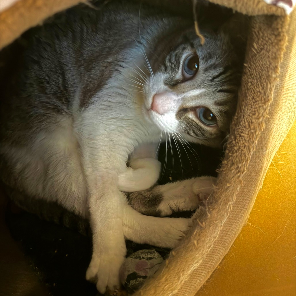 He gets along well with dogs and coexists peacefully with other cats, making him a great match for a relaxed multi‑pet household. Boydie would do best with a family with children ages 7 and up who understand the importance of patience and gentle interaction.
