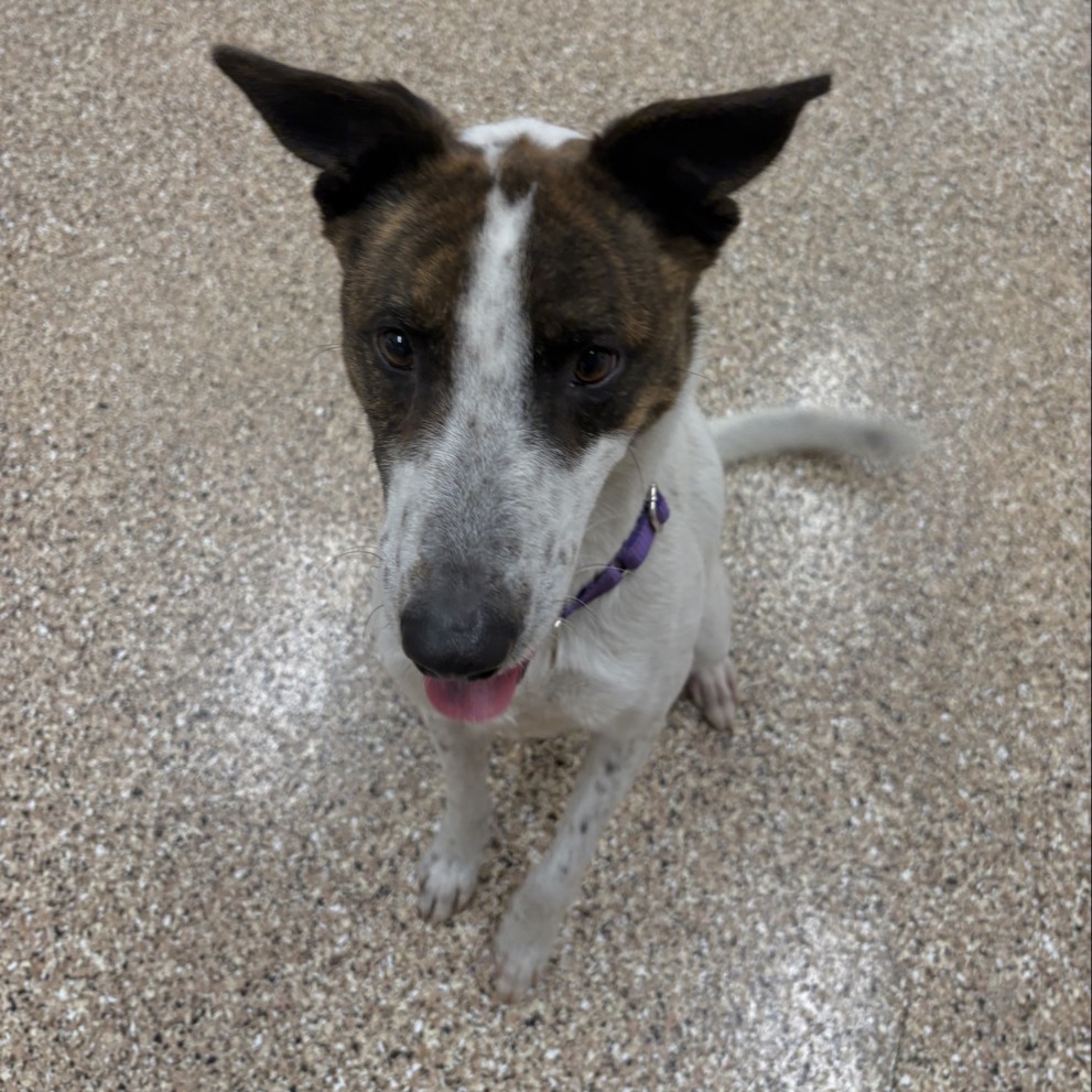 Texas is a handsome cattle‑dog mix with a lot of heart and energy to share. He was originally adopted from us as a puppy and recently returned through no fault of his own when his family moved to housing that couldn’t accommodate a dog. He can be anxious or unsure at times, but once he settles, his affectionate and playful side shines through.