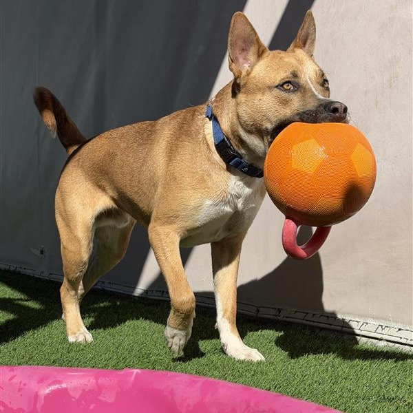 Hi there, I'm Rocket! I've got energy to spare and love to play. I'm friendly and a bit goofy, but that's part of my charm. I must admit, I do need to be your one and only dog in the home. I can't wait to find my forever home where I can run, play, and shower my new family with love. I may need a little extra patience and training, but I promise, I'm worth it. Adopt me, and let's make some amazing memories together!